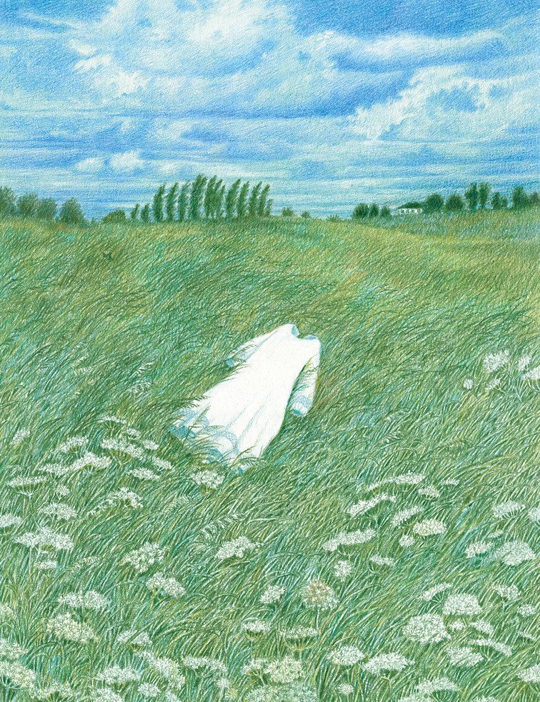 Oto przedstawicielki trzech pokoleń rodziny, którą Joanna Concejo ożywia – zaprasza do bujnego ogrodu, pełnego kwiatów, odcienie zieleni i błękitów. I przywołuje pamięć. Trzy małe dziewczynki wyruszają w podróż, podczas której wspomnienia zmieniają się w to, co nieoczekiwane, podobnie jak obrazy, które są na zmianę żywe, odległe, ledwie wyczuwalne i uderzająco wyraziste.